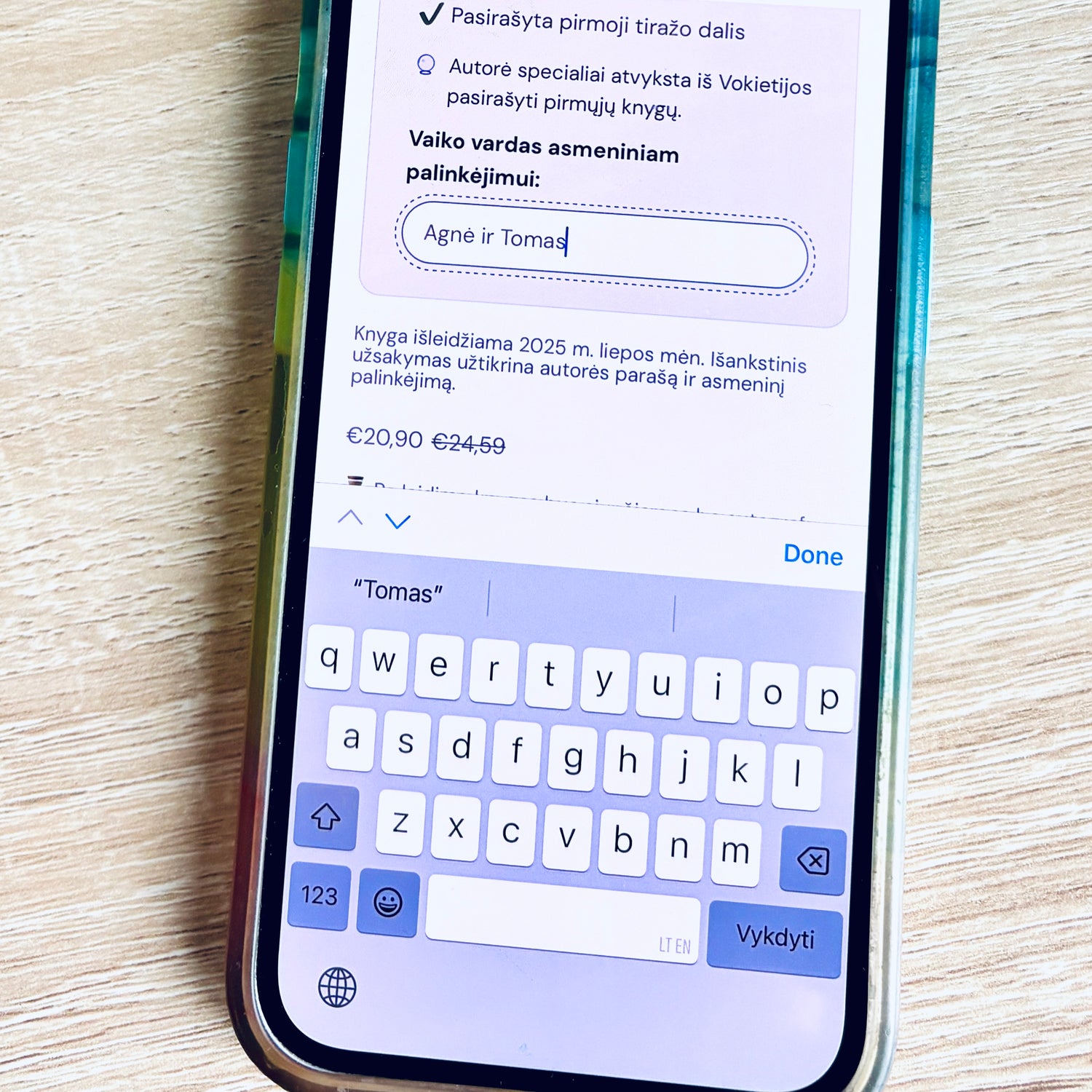Po apmokėjimo gausite el. laišką, kuriame galėsite dar kartą patvirtinti arba pakoreguoti vardus.